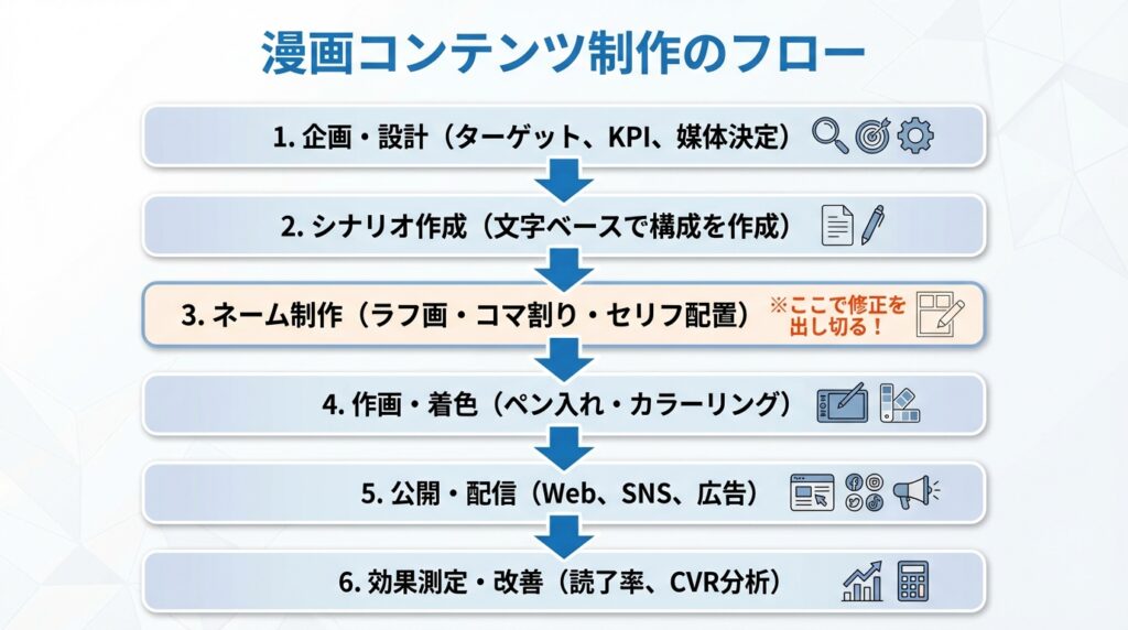 ここからは、実際に企業が漫画マーケティングを導入する際の具体的な手順を解説します。