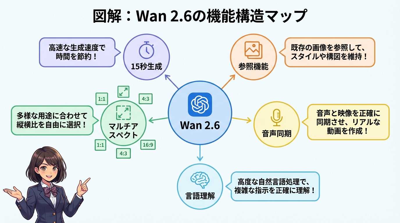 ここでは、Wan 2.6が具体的にどのような機能を持っているのか、5つのポイントに絞って深掘りします。